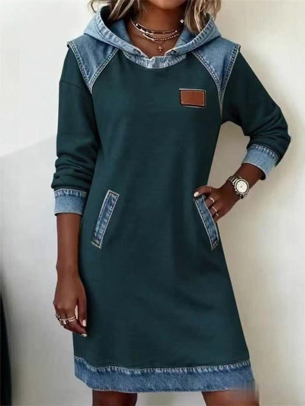 The Charlotte Dress combines soft comfort with subtle denim-style details for a relaxed, easy-to-wear look. The gentle hood, practical pockets, and comfortable fit make it a dress you can rely on day after day.