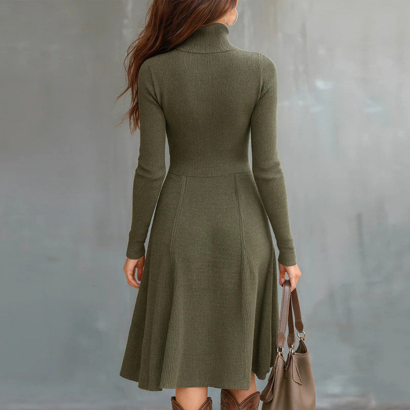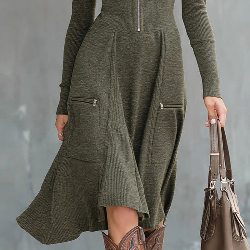 Helena – Zip Front Knit Midi Dress