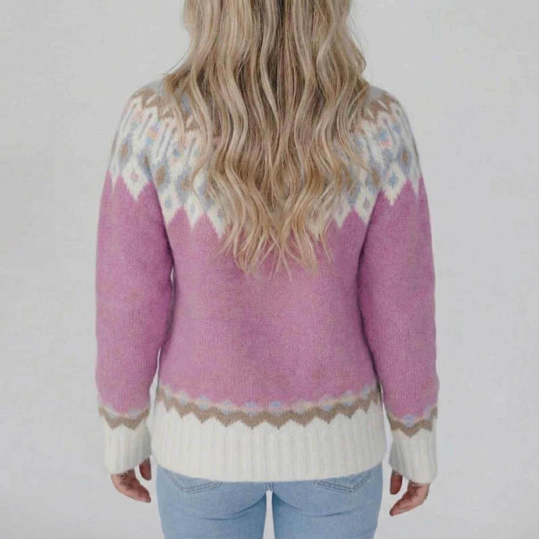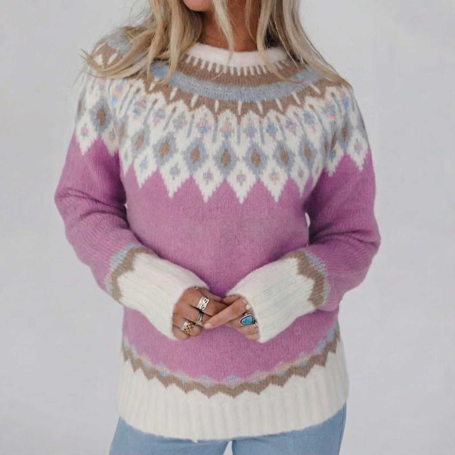 Wrap yourself in timeless winter charm with our Nordic Fair Isle Knit Sweater – Soft Purple Edition. Inspired by classic Scandinavian patterns, this cosy jumper blends traditional design with a modern, feminine colour palette — perfect for the colder UK seasons.